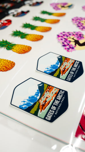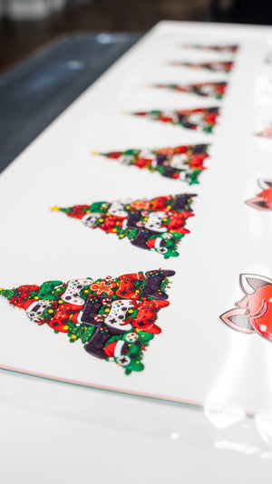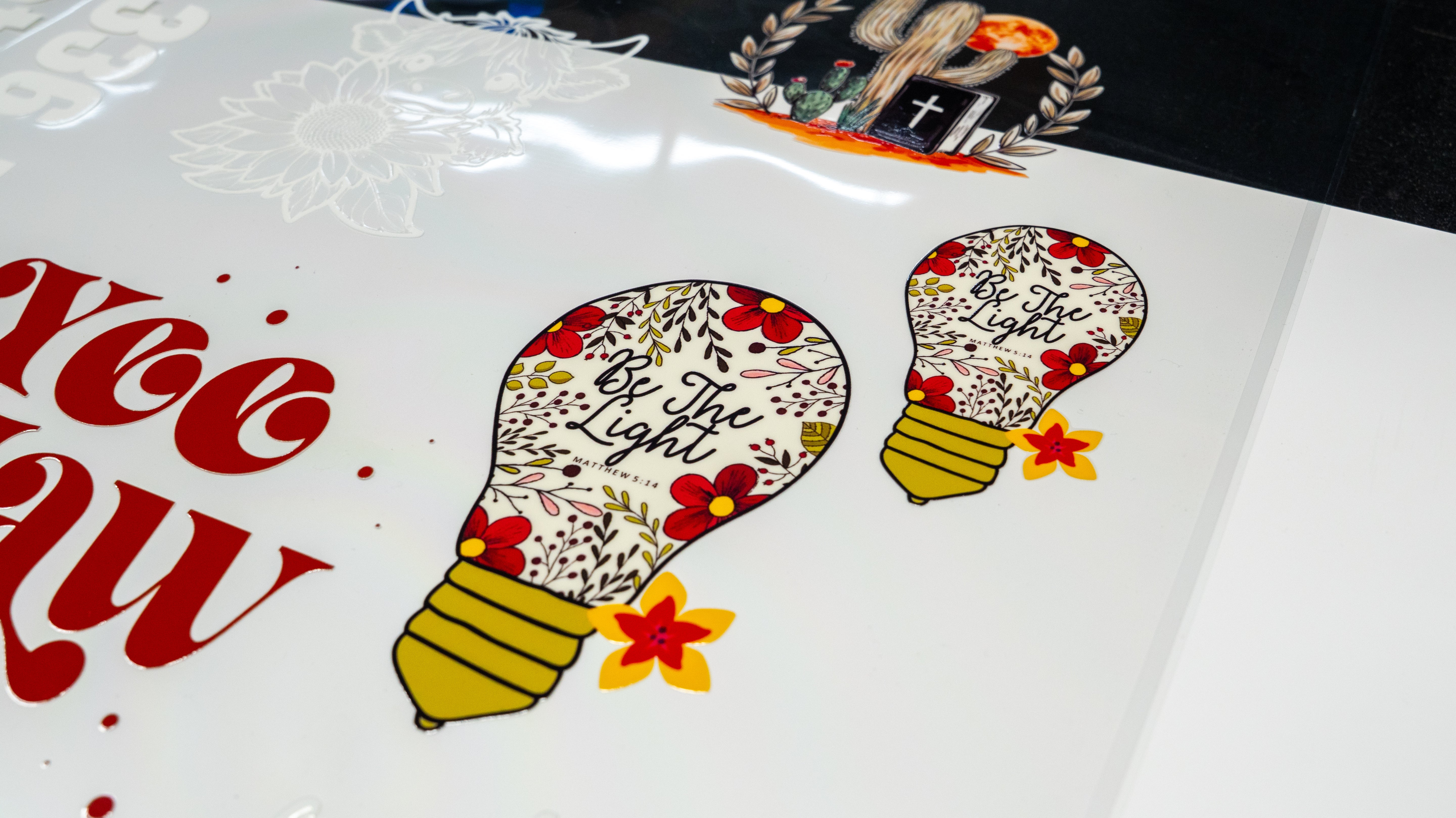 On the left is some UV DTF Transfers from a different company that I was super disappointed with. Their white ink isn't choked correctly. The black print doesn't look as deep.